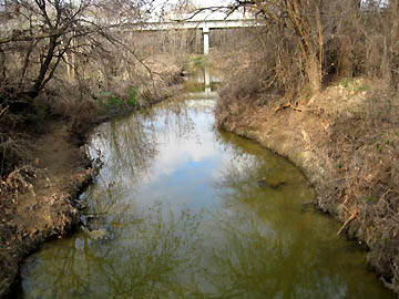| Creek bed lined with rock. |