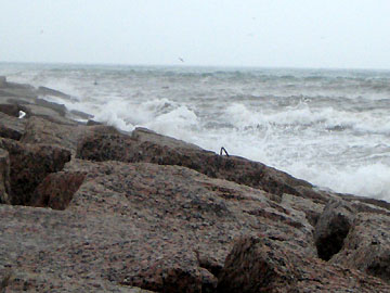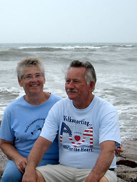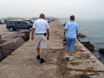 There was an observation tower. I'm looking down from it on Ed walking below.